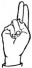 На ћирилици написано РАДНА ПРИБИЋЕВИЋ састоји се из 15 слова [?]. Исписано ћириличном једноручном азбуком за глувонеме: